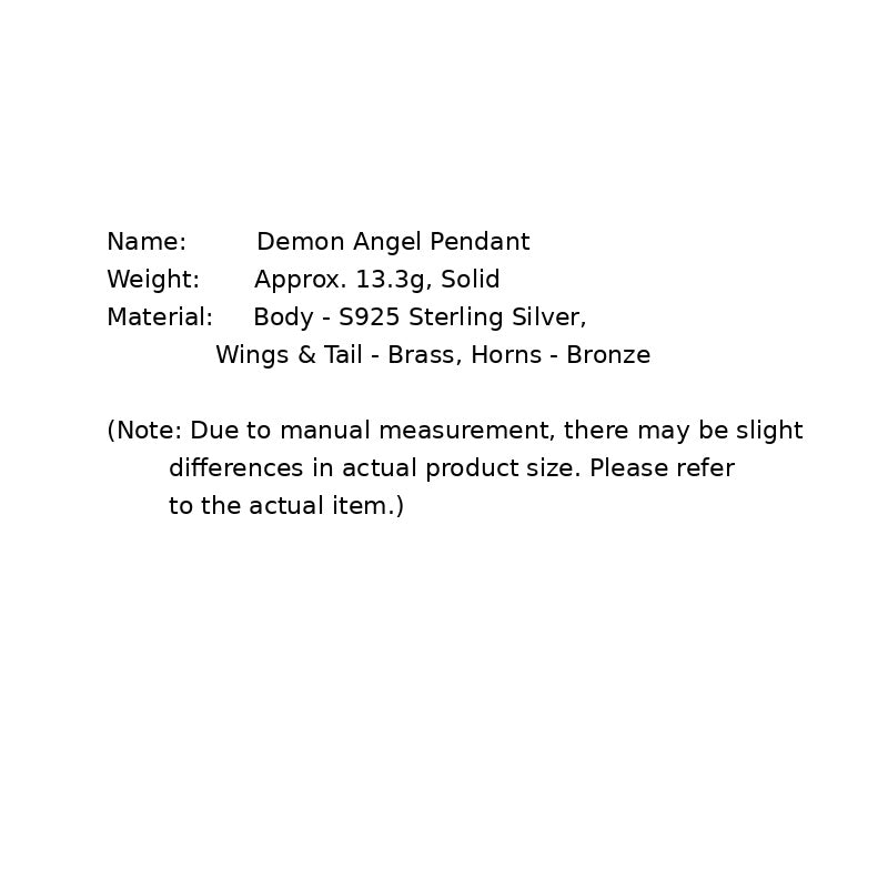 Where light meets shadow, and virtue brushes against the edge of sin, the Demon Angel Pendant is born. Sculpted with startling precision, this pendant is not a symbol—it is a paradox. A vision of elegance in contradiction: the body carved from solid S925 sterling silver, the wings stretching in brass like stained-glass rebellion, and the horns burnished in antique bronze, whispering tales of forbidden fire.