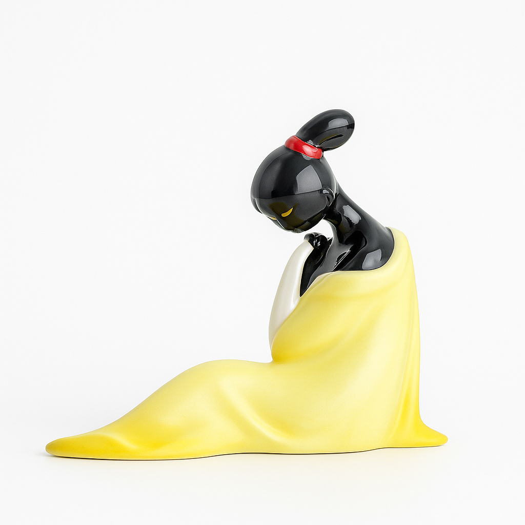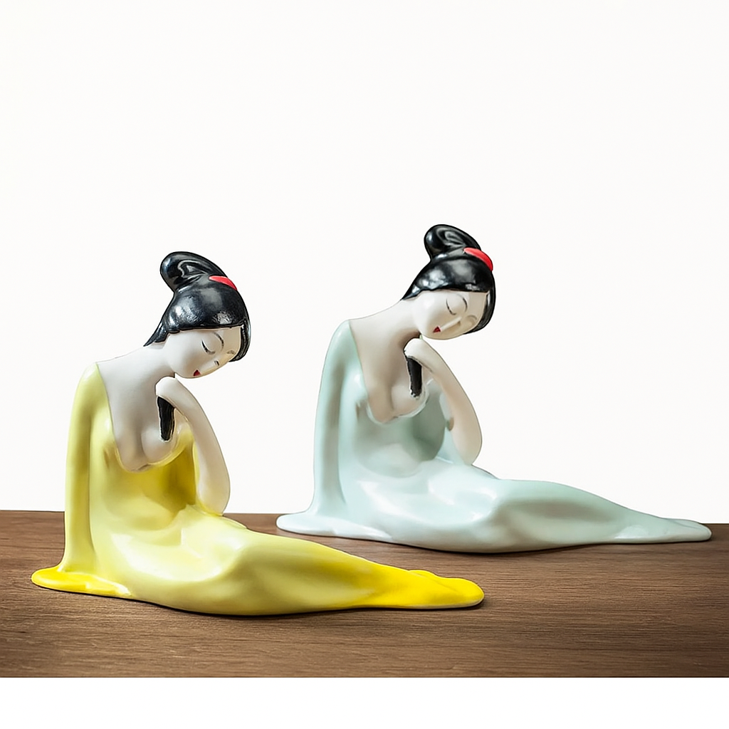 Whether seated on your tea table, bookshelf, or altar of quiet moments, she invites calm and serenity. Her colorsâmisty blue and mellow yellowâreflect two moods of the same soul: the clarity of longing, the warmth of remembrance.